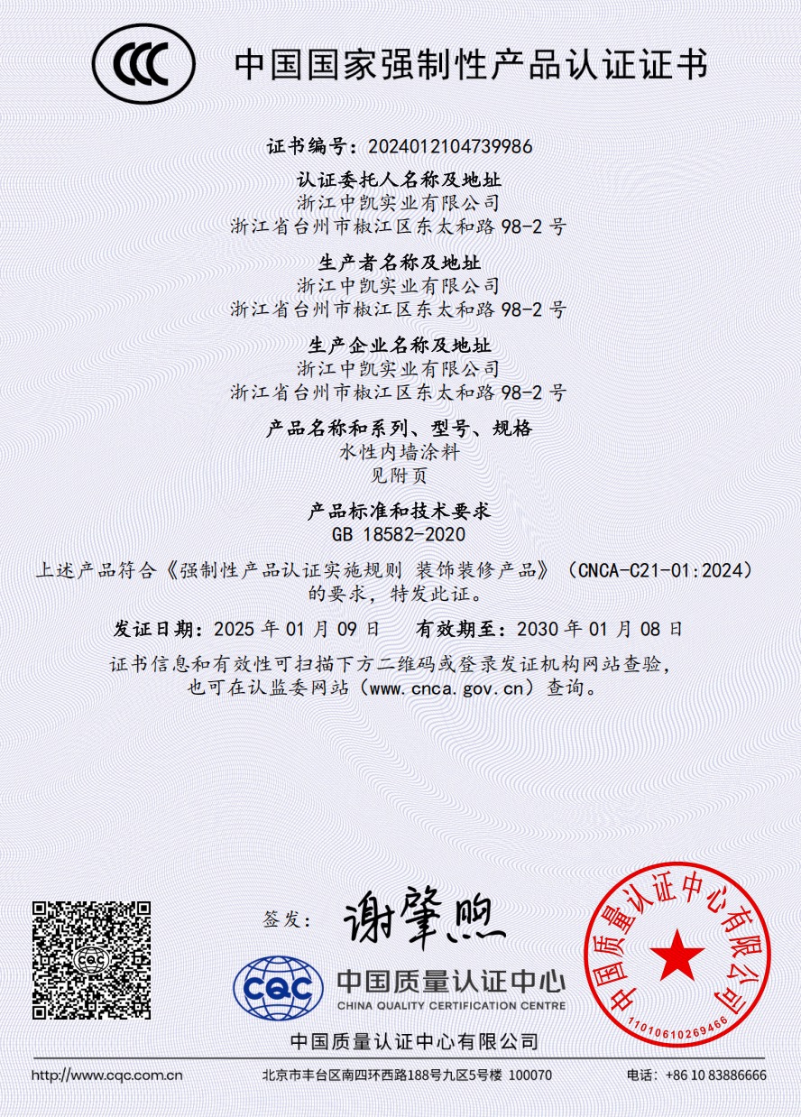 浙江中凱實業有限公司是一家由美國杜邦涂料化工集團有限公司提供高新技術,與美國杜邦化工集團有限公司授權在中國生產各種建筑涂料的制造企業。
